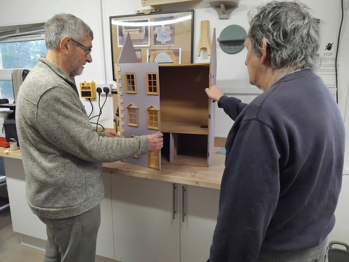 A wide range of people, from novices to past masters, take part in projects at the Sheds. David King, aged 67, from Ledbury admitted, “Over the years I’ve realised I’m no good at DIY, but here I can take part in projects with the help of others. I’ve made a bird box which I’ve taken home and hope that I will see birds nesting in it this spring”. Meanwhile, his friend Albert Marshall is a self-confessed “techy” who revels in anything practical. He commented, “I like helping people, and here I can share my knowledge and pass on skills”. Currently, the group are working together to build a dolls house for display in the Age UK Wyvern charity shop on The Homend in Ledbury town centre.